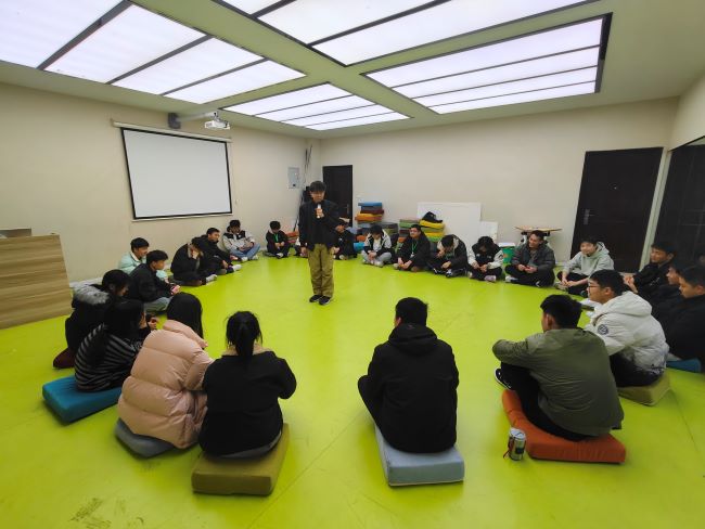 活动开始前,赖国升详细介绍了本次团辅的目标及规则,强调团队契约,为活动的有序开展营造安全、信任的氛围。破冰之旅率先打破初见的拘束。“情绪猜猜猜”环节中,同学们各展才能,通过肢体语言演绎喜怒哀惧等情绪,并分享身体反应——“紧张时手心冒汗”“开心时心跳加速”。这一活动强化了情绪识别能力,深化了情绪与身体关联的认知。紧接着,精心筹备的“情绪温度计”环节,同学们绘制个性化情绪图谱,标注近期事件中的情绪强度,并分享考试压力、人际矛盾等真实经历。赖国升适时引导,分析情绪触发点,强调“情绪无对错,读懂需求是关键”,帮助大家正视情绪根源。随后,在知识普及环节,他介绍了“情绪急救箱”,聚焦实践技能,同学们通过模拟演练,掌握“危机干预+日常调节”的双重策略。活动最后,与同学们共同回顾全程的精彩与感动,鼓励大家将活动中掌握的技能应用到日常生活中。