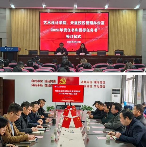 3月19-20日,艺术设计学院、天堂校区管理办公室在天堂校区综合楼召开2025年度全面从严治党暨教职工、乙方单位工作责任书签署大会。艺术设计学院、天堂校区管理办公室全体领导班子成员出席会议,会议由艺术设计学院院长、天堂校区管理办公室主任孔伟主持。