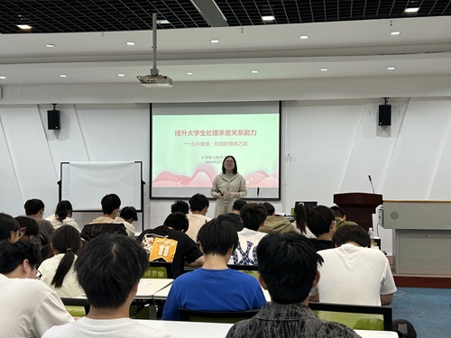 活动期间,徐清从自我认知、沟通技巧、关系边界和应对冲突等多个维度进行深度讲解。她指出,准确的自我认知是构建良好亲密关系的基础,只有明确自身需求与价值,学生才能在亲密关系中保持独立与自信。在沟通技巧方面,通过详细阐述倾听、表达及非暴力沟通等内容,并结合实际案例分析,引导学生树立正确恋爱观,清晰界定亲密关系边界。在互动环节,学生们积极参与,分享在亲密关系中遇到的困惑与经验。徐清针对学生问题,进行耐心引导与解答,帮助学生深入理解各类问题,并提供了实用有效的解决策略。