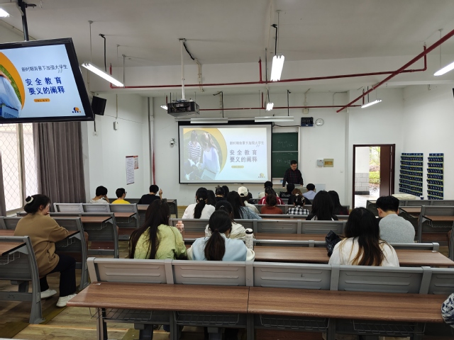 为落细落实校园安全稳定工作,强化学生公寓的安全管理,充分发挥楼层长在学生骨干队伍中的积极作用,培养和提高学院学生的安全意识。3月26日下午,天堂校区管理办公室服务保障科科长韩非在105教室为学生开展“新时期背景下加强大学生安全教育要义的阐释”专题培训,宿舍楼长、层长及部分学生代表参会。