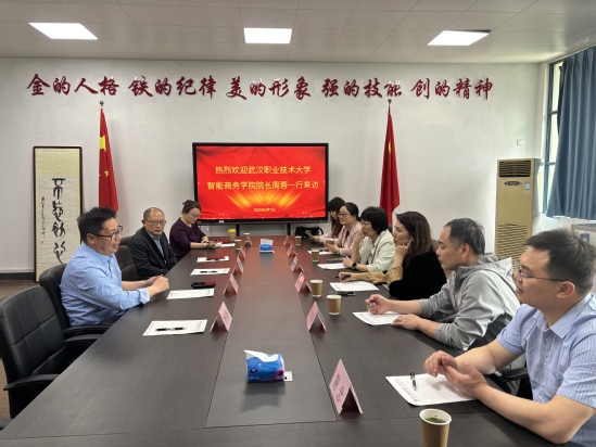 会上,阮晓文对周蓉一行的来访表示热烈欢迎并介绍了商务贸易学院在人才培养、专业建设以及产教融合方面取得的成果,随后,周蓉介绍了武汉职业技术大学智能商务学院建设情况。随后,双方就专业建设、人才培养、科研与社会服务等相关事宜进行了交流。