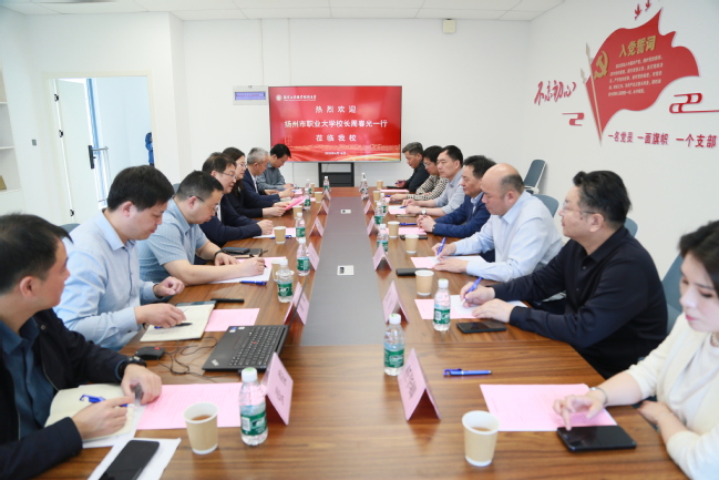 4月16日下午,扬州市职业大学党委副书记、校长周春光,党委委员、副校长吴书安一行7人来校调研交流,必赢官网党委副书记、校长何学军,党委常委、副校长魏萍在双创大楼三楼会议室接待了来宾,相关职能部门负责人陪同接待。