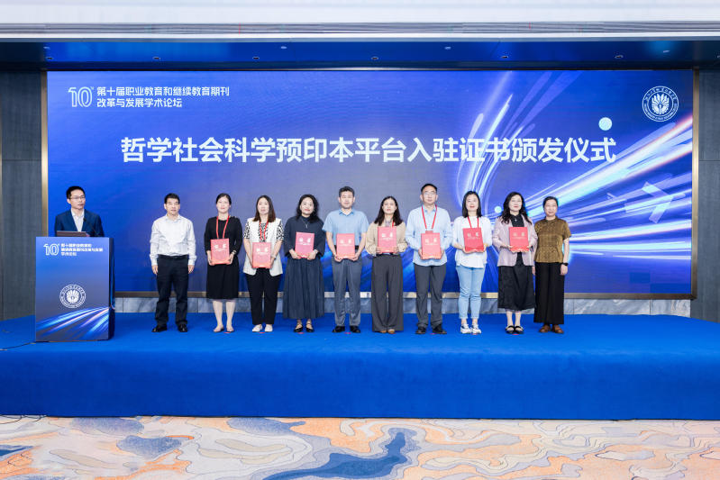 会上,领导嘉宾为《江苏高职教育》《中国成人教育》《现代教育管理》等15本签约入驻哲学社会科学预印本平台的学术期刊颁发证书。杨雨慧受邀在征文论坛上对青年学者科研论文进行点评指导,并介绍《江苏高职教育》期刊发展成就。
