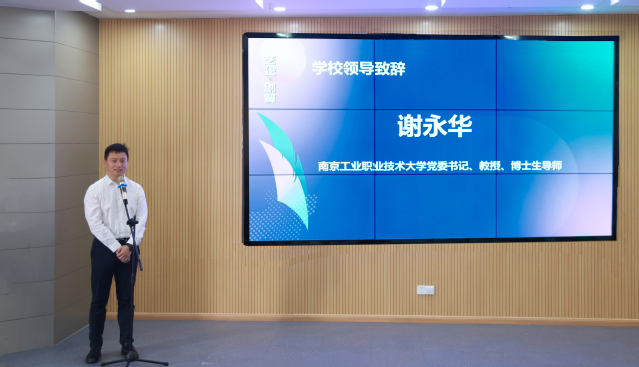 会议伊始,谢永华代表学校发表致辞,他向长期以来关心支持南工艺术设计学院事业发展的地方政府、街道园区、行业企业表示衷心感谢。他表示,学校一直致力于“三性一体”人才培养路径探索,艺术毕业设计成果展既是学校立足地方产业、服务区域经济发展、创新人才培养的重要检验,也是广大学子将艺术设计与创新思维奇妙碰撞、将设计作品由“书架”转移到“货架”的实践展示,更是“政-校-企-行”跨界分享交流、提升合作的开放平台。他希望,政校企行四方以艺术毕业设计成果展为新起点,推进深度融合,力争在职业教育“五金”建设上下功夫,在教学模式改革上出新招,积极打造产教融合新平台,探索协同育人新机制,为地方文化创意产业和经济社会发展提供有力的人才支撑和智力保障。