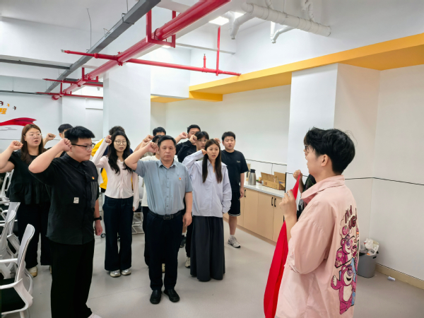 随后,学生党支部宣传委员王镇江带领在场师生党员重温入党誓词,回溯入党时的赤诚初心,强化党员的身份认同和责任担当。