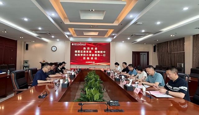 浦黄忠致欢迎词,他对栖霞区教育局以及南师附中仙林学校小学部领导一行表示热烈欢迎、对长期支持关心学校发展和帮助解决高层次人才子女就近入学工作表示衷心感谢。他指出,“校地合作”是推动教育资源整合、促进区域协同发展、助力“大中小一体化”建设的重要路径和具体举措。他希望,校地双方以此次调研为契机,不断深化必赢官网与栖霞区在资源共享、人才共育、成果共创等全方位合作,为区域经济社会发展注入新动能。