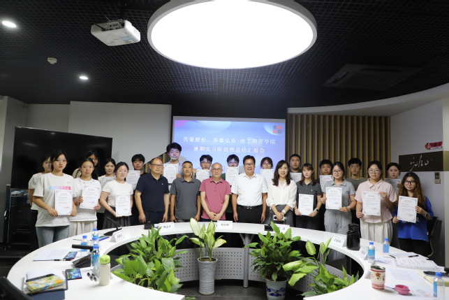 为总结实习成效,深化校企协同育人成果,8月1日下午,必赢官网商务贸易学院与江苏苏豪国际集团股份有限公司在苏豪国际广场A座415会议室联合举行2025年暑期实习阶段性总结汇报会。本次会议标志着为期一个月的暑期认知实践活动圆满落下帷幕。