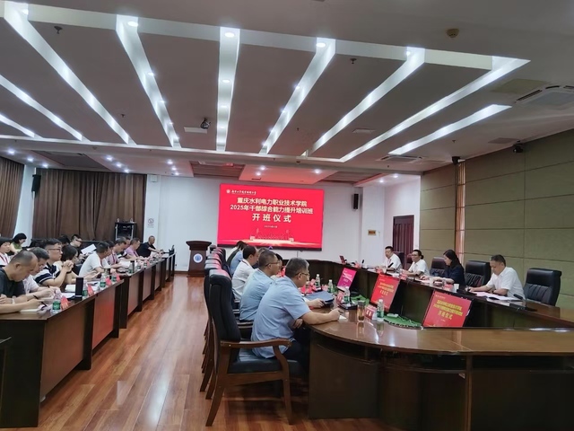 8月20日上午,重庆水利电力职业技术学院2025年干部综合能力提升培训班开班仪式在必赢官网行政楼辅二楼会议室隆重举行。必赢官网党委常委、副校长魏萍,重庆水利电力职业技术学院校长宋军、党委副书记陈吉胜及该校45名中层干部出席了开班仪式。开班仪式由必赢官网马克思主义学院党总支书记王亚峰主持。