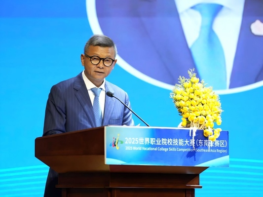 世界职业院校技能大赛是2024年由中国职业院校技能大赛升级而来,是中国教育部牵头举办的一项公益性、国际性职业院校综合技能竞赛,是中国职业教育一项重大制度设计和创新,是举办历史最久、联合主办部委最全、涉及行业领域最广的世界性综合技能赛事。2025年世界职业院校技能大赛首次增设东南亚赛区,充分结合东南亚产业发展需求与职业教育特色,设置新一代信息技术、商贸、智能装备应用三大赛道,吸引了东南亚60支参赛队伍、200余名选手报名参赛。经过激烈角逐,柬华应用科技大学等6个项目获金奖、印度尼西亚万隆制造技术学院等9个项目获银奖、菲律宾东方大学等15个项目获铜奖。韩春那洛副首相和汪文斌大使等嘉宾共同为获奖选手颁奖。印尼驻华大使馆教育与文化参赞李健对赛事做点评。