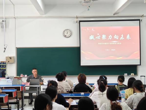 9月17日下午,商务贸易学院党委书记邢益军在求真楼315教室为第十三期分党校全体入党积极分子讲授了主题为“凝心聚力向未来——新时代中国共产党的使命与担当”的专题党课。