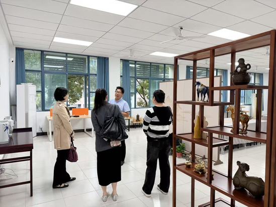 商务贸易学院院长阮晓文陪同王小波一行实地考察了学院的跨境电商实训基地和苏豪产业学院,详细介绍了学院在国际化人才培养方面的创新举措与产教融合实践成果。王小波对学院紧密结合产业前沿、系统推进实习、实训资源建设的模式表示高度认可。