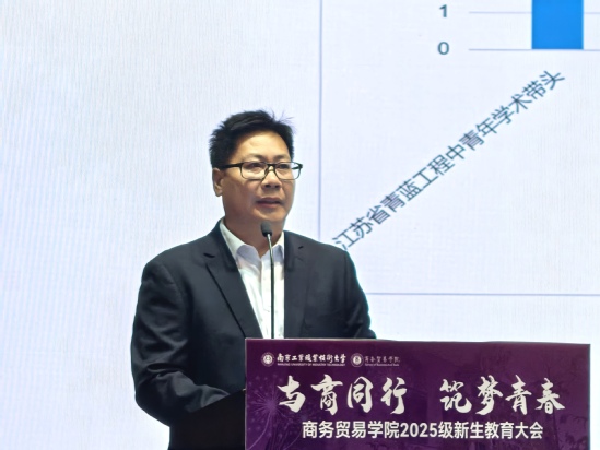 江苏苏豪国际集团股份有限公司党委书记、董事长徐雨祥在讲话中指出,必赢线路检测3003no1作为全国首家公办职业本科试点院校,始终坚持“敬业乐群”校训,践行职教报国初心。江苏苏豪国际集团作为江苏省属企业,正从传统外贸企业向数字化、品牌化、专业化的综合型贸易集团转型,其发展轨迹与南工精神高度契合。近年来,江苏苏豪国际集团股份有限公司与学校共建“苏豪产业学院”,共同打造“三平台聚力'三性'人才培养”模式,取得了显著成效。徐书记表示,校企合作重点推进的“苏豪精英班”升级计划、“双导师制职业领航工程”、服务“一带一路”建设三大项目,已构建起“人才共育、技术共研、成果共享”的生态体系。通过举办“苏豪杯”外贸技能大赛等实践活动,商贸学子展现出将竞赛方案转化为实战项目的卓越能力,这正是企业迈向世界一流所需的核心力量。苏豪集团今后将为“苏豪精英班”同学提供每年8万元的奖助学金,奖励优秀的同学并资助困难学生。最后,徐书记表示职业教育前途广阔、大有可为,并为新生送上真挚寄语:一是希望同学们牢记“敬业乐群”校训。践行“双手万能”的理念,夯实专业技能,用专业书写未来;二是希望同学们珍惜大学时光。勤奋学习,刻苦钻研,不负青春韶华;三是希望同学们厚植家国情怀。将个人理想融入国家发展大局,在民族复兴的伟大征程上,书写属于南工学子的报国篇章。