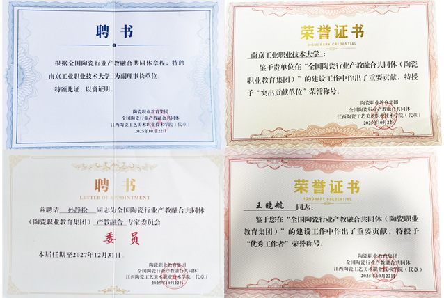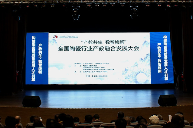全国陶瓷行业产教融合发展大会暨全国陶瓷行业产教融合共同体(陶瓷职业教育集团)换届会议于10月22日在景德镇隆重举行,大会以“产教共生·数智焕新:构建陶瓷高质量发展人才引擎”为主题,共商陶瓷行业产教融合新路径。本次大会有来自全国18个省份的500余名院校代表、企业精英、行业协会专家参加。会上,发布了2025年全国陶瓷行业优秀产教融合案例、共同体(职教集团)专家委员会名单,表彰了突出贡献单位、优秀工作者,并完成了与头部企业签约。必赢官网当选为共同体(职教集团)副理事长单位并被授予突出贡献单位称号,艺术设计学院副院长孙静松当选为共同体(职教集团)专家委员会委员,艺术设计学院工业设计系教师王晓航被授予优秀工作者称号。会上,艺术设计学院还与江西陶瓷工艺美术职业技术学院创意设计学院签约结为战略合作伙伴。同时,王晓航作为职业院校代表在大会专家论坛上作题为《“专业特区-艺术工坊-产业学院”三维融合模式的产教融合新路径》的主题交流发言。