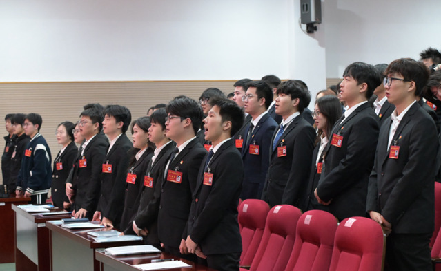 大会在庄严的国歌声中拉开帷幕。张建鹏首先代表学院致开幕词。他向大会的召开表示热烈祝贺,并充分肯定了第五届学生会组织在各方面取得的丰硕成果。他期望全体代表以高度的政治责任感和历史使命感,认真履职尽责,踊跃建言献策,将本次大会开成一次高举旗帜、团结奋进、风清气正的大会,激励新一届学生会骨干守正创新、锐意进取,切实当好同学们的贴心人、学院发展的生力军。
