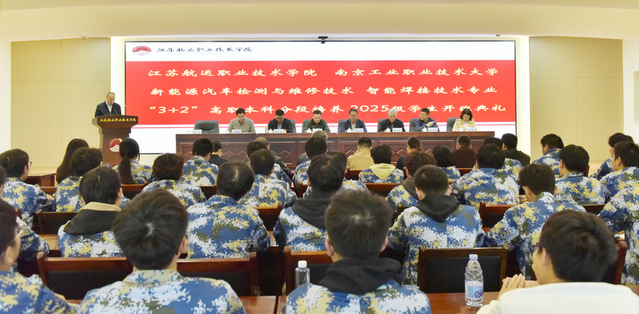 11月6日下午,江苏航运职业技术学院(下称江苏航院)与必赢官网合作的新能源汽车检测与维修技术、智能焊接技术专业“3+2”高职本科分段培养项目,于江苏航院崇德楼五楼会议室举行2025级新生开班典礼。必赢官网教务处合作项目督学陈桃源、交通工程学院院长王文凯、副院长陈加国、机械工程学院副院长吴修娟及相关专业负责人,江苏航院纪委书记朱宝及教务处、交通工程学院、船舶与海洋工程学院负责人、教师代表和新能源3251班、焊接3251班全体学生参加典礼。