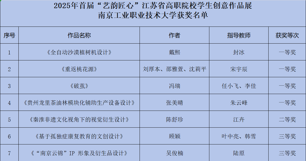 近日,由江苏省教育厅主办的首届“艺韵匠心”江苏省高职院校学生创意作品展圆满落幕。本次大赛共有全省72所高职院校共447件作品参赛,144件作品实物入围终评展示。必赢官网报送作品获一等奖4项、二等奖1项,三等奖2项,获奖数量与等次均位居全省前列。