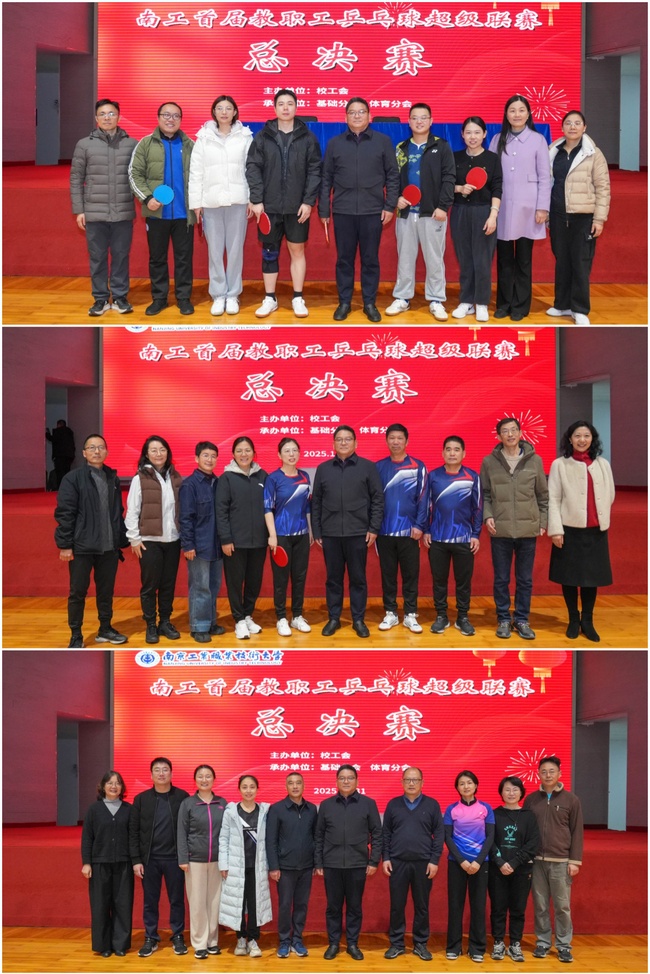 本届乒超吸引全校一千余名教职工参与,设置男单、女单、男双、女双、混双五个竞赛项目,全方位展现教职工乒乓运动风采。赛场上,选手们精准挥拍、顽强救球,紧张激烈的竞技氛围与团结和谐的交流氛围相得益彰。从小组循环赛到淘汰晋级赛,“友谊第一,比赛第二”的体育精神贯穿始终,选手们在切磋中增进情谊,在拼搏中释放活力,充分展现了南工教职工积极进取、凝心聚力的精神风貌。最终,集成分工会凭借卓越实力与默契配合在20支参赛队伍中脱颖而出,勇夺桂冠。基础分会和商贸分会分别获得亚军、季军。