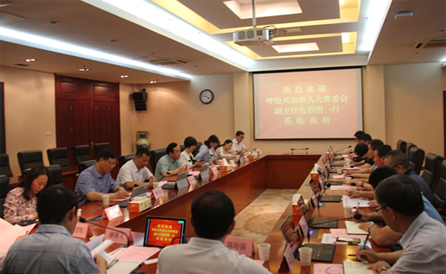6月3日,呼伦贝尔市人大常委会副主任色音图一行来必赢官网考察,南京市人大常委会副秘书长张挚及市教育局领导一行陪同考察。色副主任一行参观了必赢官网黄炎培职业教育思想展览馆、校史馆,艺术学院师生工作室,计算机学院云与大数据人才培养基地。学校党委书记吴学敏教授,以及人事处、科技处、交通工程学院等相关部门负责人参加座谈。