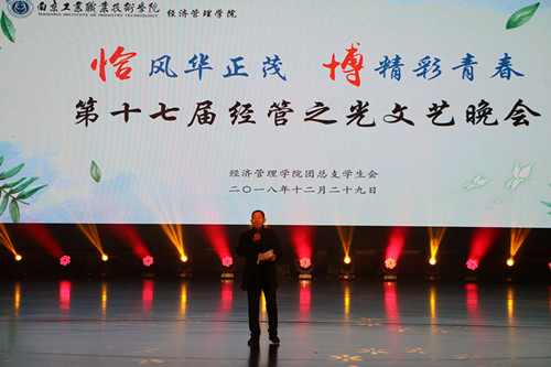 展青春风貌,为百年校庆赞歌。2018年12月29日下午18:30,南京工业职业技术学院经济管理学院“恰风华正茂,博精彩青春”第十七届经管之光文艺汇演在大学生创新发展中心剧场拉开帷幕。学院党总支书记陈林杰,副院长许璟、许虹,辅导员出席并参与演出。全院近800名师生参与了本次活动,本次文艺汇演由会计1741班王霞、房管1813班王冲冲、工商1811班刘蕴朗和造价1821班于辰慧等四位同学主持。