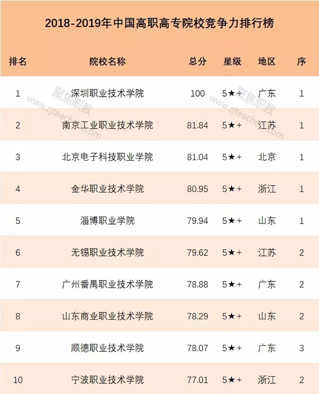 【聚焦职教】2018-2019年中国高职高专院校竞争力排行榜