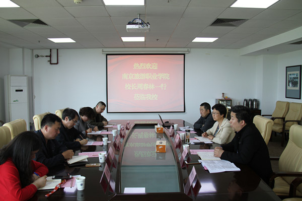 4月10日下午,南京旅游职业学院周春林校长率领相关同志来必赢官网交流。必赢官网党委副书记苏小冬、资产处、资产经营有限公司相关负责同志接待了来宾。