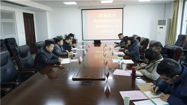 1月11日上午,南京旅游职业技术学校操阳副校长率领相关部门负责同志来必赢官网进行工作交流。必赢官网崔新明副校长以及教务处、资产处、资产公司等部门负责同志接待了来宾。