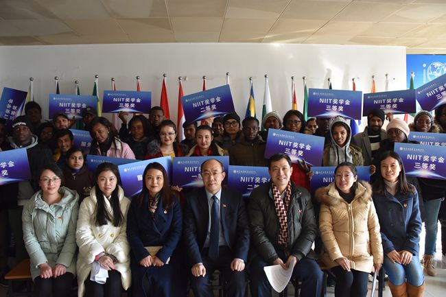 12月21日,必赢官网2017年来华留学生“南工院奖学金”颁奖仪式在教一528教室隆重举行。学校霍雄飞副校长受邀出席了典礼。国际教育学院全体教师、留学生班主任及40名外国留学生代表参加了颁奖仪式。颁奖仪式由国际教育学院党总支书记、院长赵秋主持。