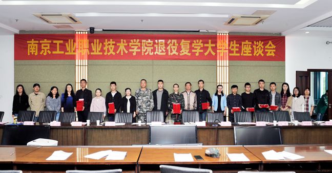 座谈会上,老师们为退役复学的学生颁发了荣誉证书,热烈欢迎退役复学的学生回归南工院大家庭。退役复学的学生代表机械工程学院韦超同学分享了自己在部队的经历、收获与体会。他表示,军营生活使他具备了训练有素、纪律严明、坚韧自信的品质,回校后他深刻感受到了学校的温暖,他将继续发扬军队的优良传统,努力学习,成长成才。