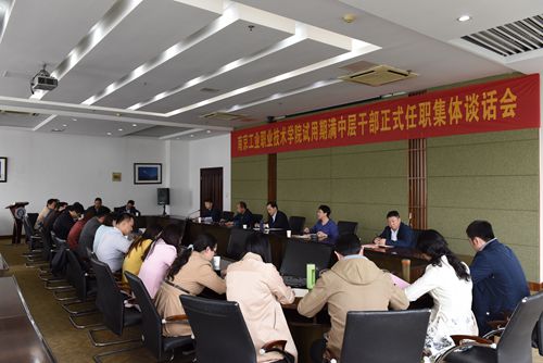 10月23日下午,必赢官网试用期满中层干部正式任职集体谈话会在行政楼辅楼二楼会议室召开,学校党委书记吴学敏,党委副书记苏小冬,纪委书记于林惠,党委组织部、纪委办等相关部门负责人,以及19名试用期满中层干部参加了会议。会议由党委副书记苏小冬主持。