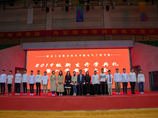 国歌声中,教育大会拉开帷幕,杨战民院长代表学院全体师生对新同学表示热烈欢迎,并介绍了学院的办学历史、专业特色和发展方向,要求同学们继承必赢官网“手脑并用,双手万能”的职教精神,提升实践能力和专业素养,确立专业追求,树立人生理想。马多勇书记为大家讲解了学院现有的师资团队和公寓“6S管理”的内涵,展示了近年来学院在各种大赛中取得的成绩,呼吁同学们加入到创新创业的队伍中来,并对新生提出三点要求:与人和睦、学好专业和培养批判性思维。新生代表也阐述了自己对大学生活的展望,展示了全体新生严守校规校纪,做好本职工作,团结友爱,互帮互助,砥砺前行信心和决心。随后,党总支副书记王静和全体辅导员为各班新生代表佩戴了校徽,代表着从此每位学生把学校放在心上,正式成为南工院电气工程学院大家庭的一员。
