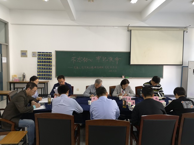 10月23日,交通工程学院党总支在求真楼106会议室开展“不忘初心、牢记使命”主题教育调研成果汇报会。校总督学卢兵到会指导,党总支书记周昱英主持会议并做调研汇报,副院长王文凯、党总支副书记许伟做分管调研报告。教学部主任、专业带头人、党支部书记、群众教师等代表参会。