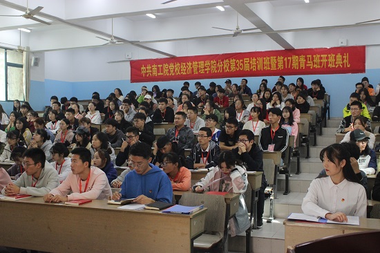 根据经济管理学院党总支总体部署,10月30日下午,中共南京工业职业技术学院经济管理学院分校第35届培训班暨第17期青马班开班典礼在乐业楼阶梯教室隆重举行。党总支书记陈林杰、党总支副书记黄滢、兼职组织员李安东、师生第一、二、三党支部书记、党总支组织员以及190多名学员参加了本次开班典礼。