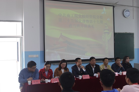 典礼在庄严嘹亮的国歌声中拉开序幕,首先由学生干部代表刘国栋同学对党校学习的意义、理论学习的重要性、党校教学内容、教学管理以及最后的结业成绩进行了介绍。接着学生干部代表王圆同学绍了青马班的性质以及教学计划,并动员全体学员努力学习马克思主义理论知识,要做到理论与实践相结合。之后第34届党校优秀学员代表工商1811代亚宁同学进行了发言,她回顾了前期学习过程,并分享了自己学习体会和收获;第17期青马班新学员代表房管1911胡俊杰同学也进行了精彩发言,他代表全体学员郑重承诺,在接下来的学习中要树牢“四个意识”,坚定“四个自信”,坚决做到“两个维护”,努力学习,以政治理论武装大脑,以学促做,以做践学,争取能成为本期青马班的优秀学员。