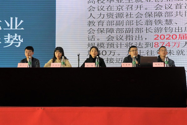 最后,赵颖做总结发言,她提醒毕业生要树立起积极的就业意识,珍惜校园招聘的好机会,协调好专转本(考研)与就业间的关系,以积极勇敢的心态面对就业,同时提前祝福同学们能够早日找到自己适合满意的工作岗位,在社会的舞台上能够以优异的成绩创造出属于自己的一片天地。