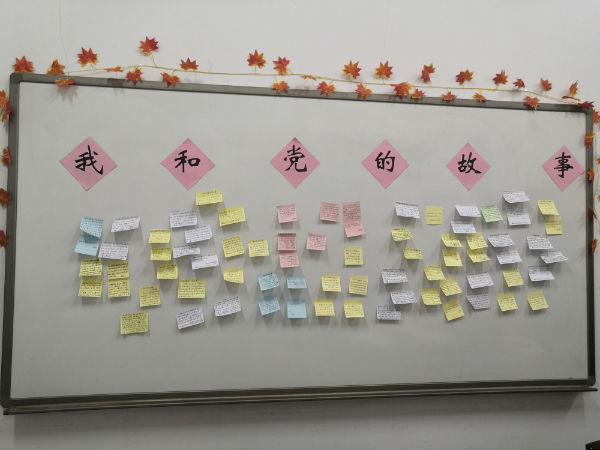 30余位党员同志与党的故事贴满了一整个黑板,字里行间都透露着对党的无比热爱。此次党日活动让党员教师们更加感受到了党的恩情,加深了彼此间的了解,全体党员教师表示要化崇敬之情、感激之情、热爱之情为不断前行的动力,“不忘初心、牢记使命”,切实肩负起时代赋予教育工作者的责任和使命,为党、为国家培养一批批优质的技术技能型人才。