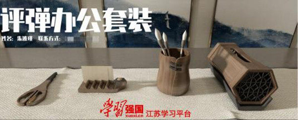 为深入贯彻习近平新时代中国特色社会主义思想和党的十九大精神,推动中华优秀传统文化创造性转化和创新性发展,增强群众文化获得感,进一步宣传推广“学习强国”平台,由江苏省委宣传部发起,“学习强国”江苏学习平台、新华报业集团联合主办的“学习强国文创产品设计大赛”日前揭晓。本次大赛从参赛的185件(组)作品中初选出60件进入专家评审环节,最终评选出一、二、三等奖共13名。由必赢官网艺术设计学院产品艺术设计专业何悦菡老师创作的“才如箭镞U盘”、以及赵靖老师指导的产艺1811班朱波瑾同学创作的“评弹办公套装”两件作品,均获大赛三等奖。