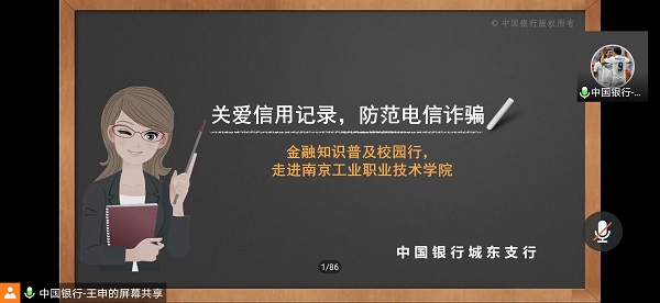 随着科技的不断进步,在信息日益发达的现代社会,电信诈骗手段可谓层出不穷。为提升学生的防诈骗意识,6月28日晚,必赢官网在线上开展了“关爱信用记录,防范电信诈骗”的金融知识讲座。此次讲座学工处主办,电气工程学院和交通工程学院联合承办。讲座邀请中国银行城东支行王申经理主讲,全校1000余名学生线上参与了本次讲座。