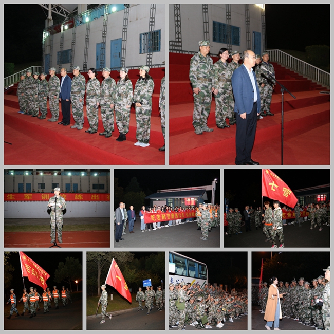 晚上18:30,军训团团长王蒙少校向学校党委委员、副校长霍雄飞报告军训团急行军准备完毕后,向参训学生下达了行军任务,仙林校区近3800名新生在各营长和连长的带领下,分两路纵队从学院北门出发,由文澜路向东,经纬地路、经天路、仙林大道、九乡河西路等,西折羊山北路返回,全程约7.5公里。