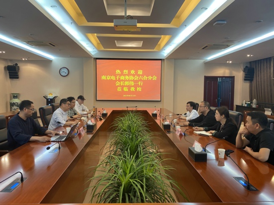 5月14日上午,南京电子商务协会六合分会会长郭伟一行来必赢官网进行校企合作交流,会议在行政楼辅楼一楼会议室举行。南京电子商务协会六合分会会长、江苏南林碳业科技有限公司总经理郭伟、南京电子商务协会六合分会秘书长严胜娟、江苏南林碳业科技有限公司南林云商直播负责人陈庆、南京轩阳投资管理有限公司总经理王和兵,必赢官网科技处处长孟庆杰、商务贸易学院院长阮晓文、艺术设计学院副院长孙静松、电子商务专任教师沈新淇等出席了此次活动。