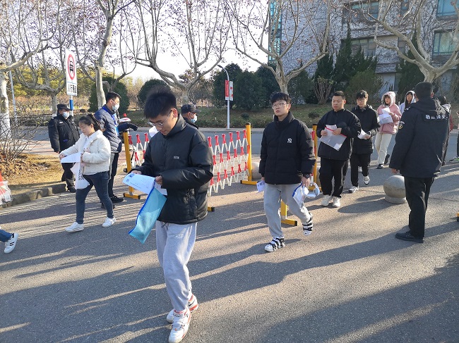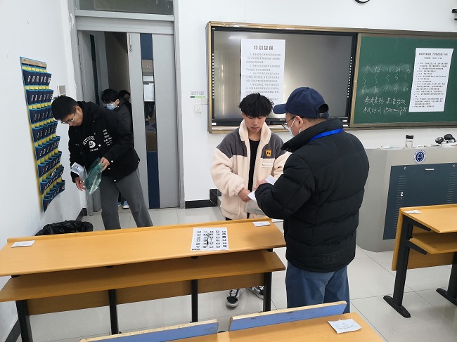 考试前,学校考试工作领导小组召开考试协调会议,统筹常态化疫情防控和考试组织安排。根据上级文件精神,学校疫情防控领导小组制定防控预案,保证师生考试安全。学工部门落实学生健康监测和考风考纪教育并发布考生须知,信息化建设与管理处、保卫处、后勤管理服务中心等部门高标准保障考试硬件环境和设施,教务处对全体监考、巡考和考务人员进行集中培训和指导。考试前一天,教务处、保卫处、信息化建设与管理处、后勤管理服务中心、宣传部、天堂校区管理办公室等部门联合对保密室、普通考场、隔离考场、入场通道、听力播放设备、防疫物资等进行全面检查。