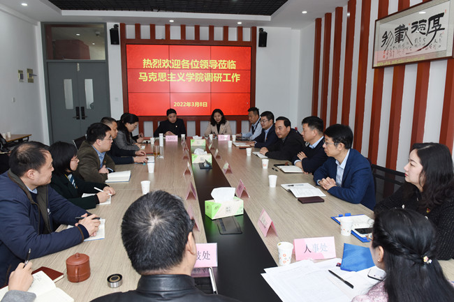 3月8日上午,校党委书记吴学敏、党委副书记、校长谢永华、党委副书记王伟、党委常委、副校长孙雁飞一行到马克思主义学院开展专题调研。