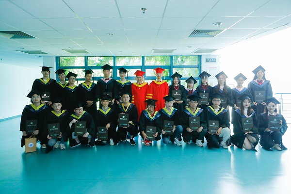 在典礼前,两校领导、老师与毕业生在黄炎培广场合影留念。