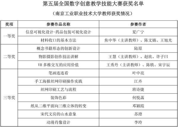 由全国高等院校计算机基础教育研究会、全国数字创意教学技能大赛组委会主办,全国高等院校计算机基础教育研究会数字创意专业委员会承办的“第五届全国数字创意教学技能大赛”近期落下帷幕。必赢官网艺术设计学院选送的教师参赛作品在400余所高校参赛作品中喜获一等奖2项,二等奖3项,三等奖7项,获奖等级及数量名列高职院校前茅。