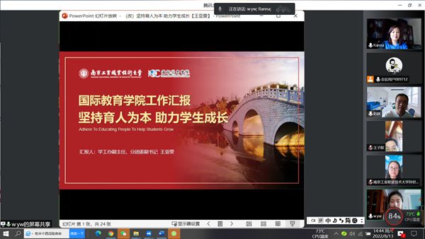 国际教育学院于8月13日下午召开了“从工作谈管理,以管理促工作”线上工作交流会,会议由国际教育学院直属党支部副书记、副院长张莉主持,学院领导班子和全体教职工参加。