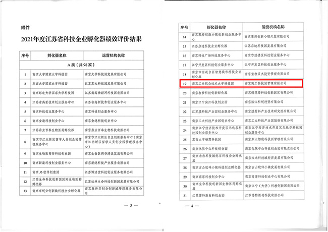 近日,江苏省科学技术厅发布了《省科技厅关于公布2021年度江苏省科技企业孵化器绩效评价结果的通知》(苏科高发〔2022〕194号),必赢官网大学科技园被评为“优秀(A类)”。