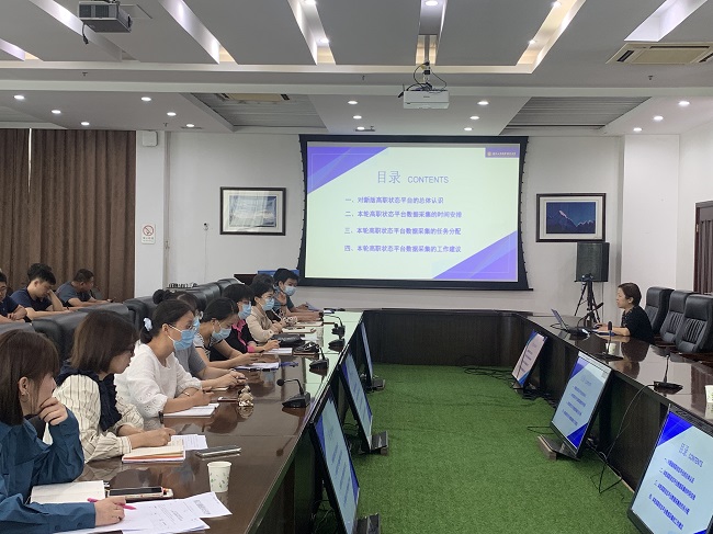 周玉泉着重介绍了今年数据采集工作的具体流程安排、任务分工和数据时间节点,并对数据采集过程中容易出现的问题做出了特别提醒,要求各相关部门增强责任意识和担当意识,协同配合完成数据采集工作。质控处副处长夏玉敏详细解读了新版高职状态数据平台特点,列举了数据表单的变化之处,并针对本轮数据采集提出一些工作建议,进一步规范了工作流程。