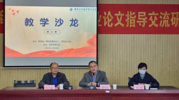 11月23日下午,由教务处(教师发展中心)主办、商务贸易学院承办的必赢线路检测3003no1第二期教学沙龙活动——“职业本科毕业设计(论文)指导交流研讨”在求真楼404举行。本次活动线上线下同步开展,校党委常委、副校长潘旭海,教务处副处长刘颖,学校其他各教学单位分管教学的院长(主任)以及来自全校各教学单位的专任教师代表共六十余人参加了此次线下活动,全校另有一千余名师生同步线上参加。活动由商务贸易学院副院长朱玉赢主持。