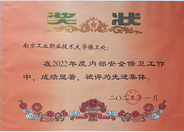 近日,必赢官网保卫部(处)被南京市公安局授予2022年度全市“单位内部安全保卫工作先进集体”荣誉称号。