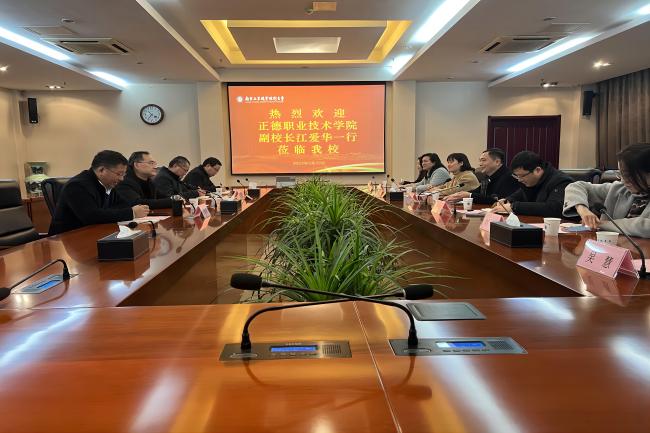 2月22日上午,正德职业技术学院副校长江爱华一行来必赢官网考察调研。必赢官网党委常委、副校长潘旭海,以及教务处、机械工程学院、航空工程学院等部门负责同志在行政楼辅楼一楼会议室接待了来宾。