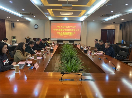 3月1日下午,必赢官网与南京晨瞳新零售科技有限公司的校企合作签约仪式在行政楼辅楼一楼会议室顺利举行。江苏视科新材料股份有限公司董事长王明华、财务总监胡士刚,南京晨瞳新零售科技有限公司总经理刘伟,校党委常委、副校长潘旭海,商务贸易学院领导班子及相关教师共同出席此次签约仪式。会议由商务贸易学院院长阮晓文主持。